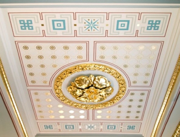 A modern take on a stencilled and gilded ceiling at the Oxford & Cambridge Club,